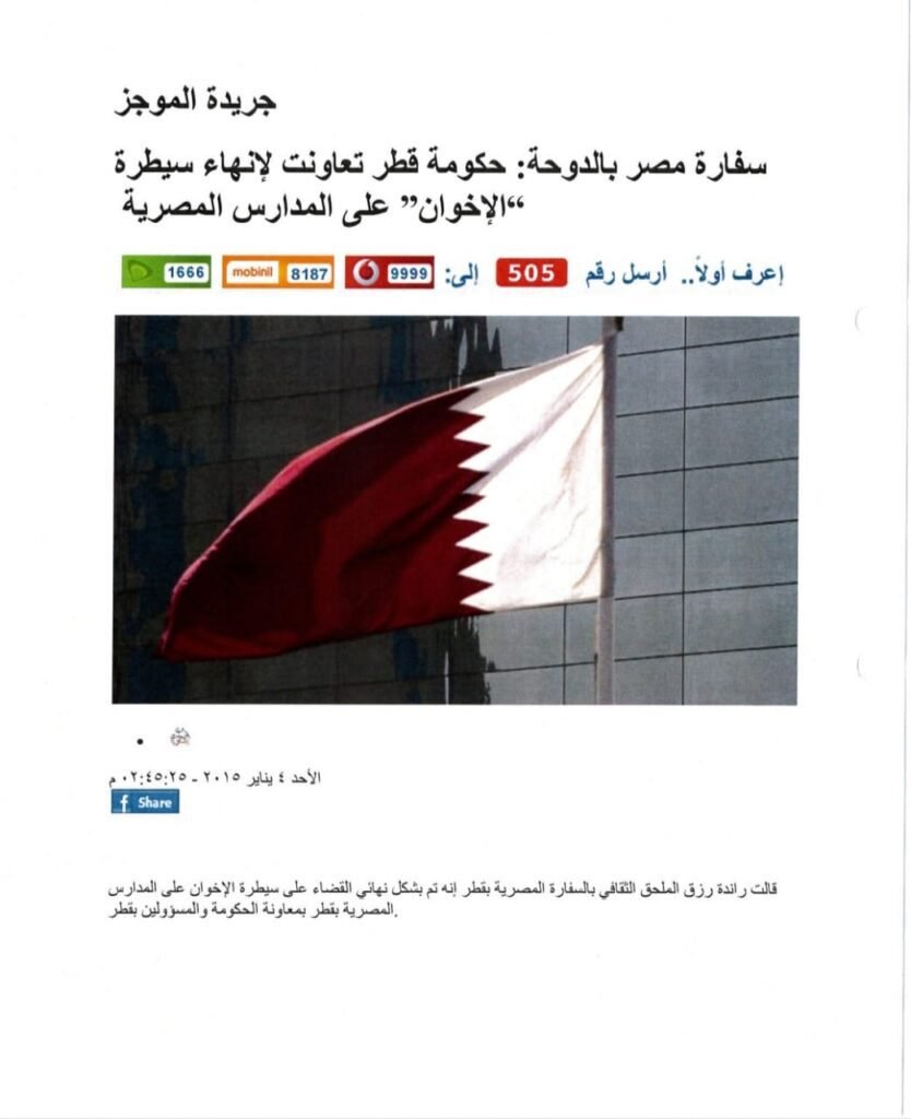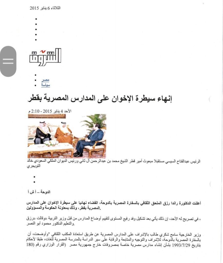 سفارة مصر بالدوحة: حكومة قطر تعاونت لإنهاء سيطرة الإخوان” على المدارس المصرية